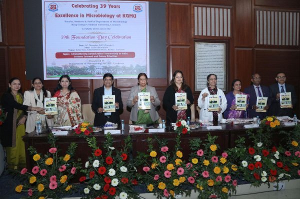 Lucknow, 17 Dec, 2025 12:44 AMलखनऊ, (आईपीएन)। किंग जॉर्ज चिकित्सा विश्वविद्यालय (केजीएमयू), लखनऊ के माइक्रोबायोलॉजी विभाग ने मंगलवार को अपना 39वाँ स्थापना दिवस अत्यंत गरिमामय एवं अकादमिक वातावरण में सेल्बी हॉल, प्रशासनिक भवन, केजीएमयू में मनाया।