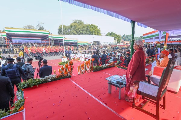 The Governor took the salute at the Republic Day parade at the Legislative Assembly building. The parade featured a tableau and band from the Public Works Department based on the theme of 'Vande Mataram'.