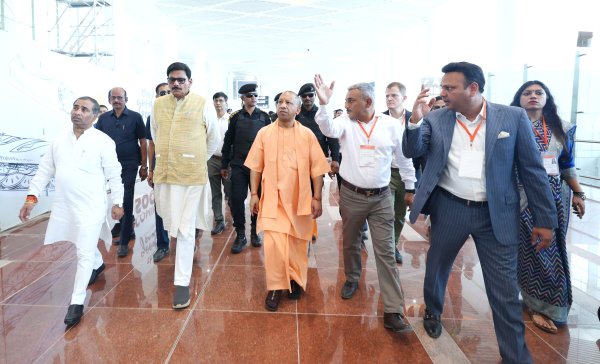 Lucknow, 25 Oct, 2025 07:18 PMनिरीक्षण के दौरान डोमेस्टिक टर्मिनल, उद्घाटन समारोह स्थल, सुरक्षा प्रबन्धन, यातायात व्यवस्था तथा अन्य निर्माण कार्यों की प्रगति का अवलोकन किया