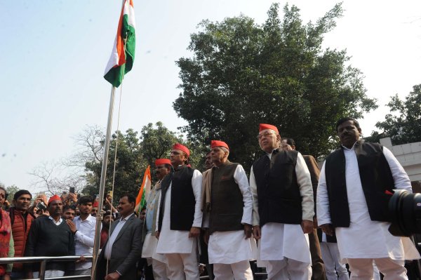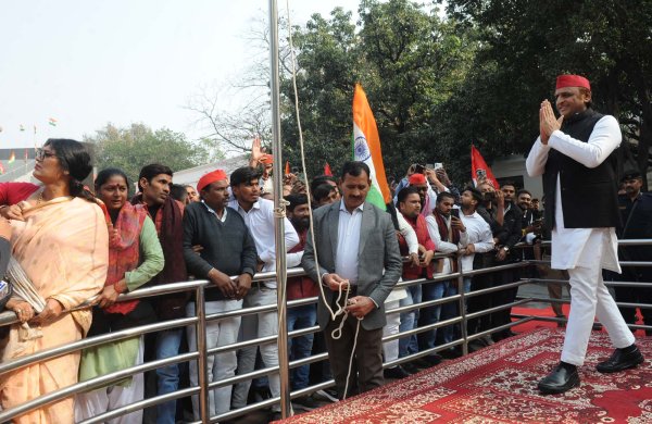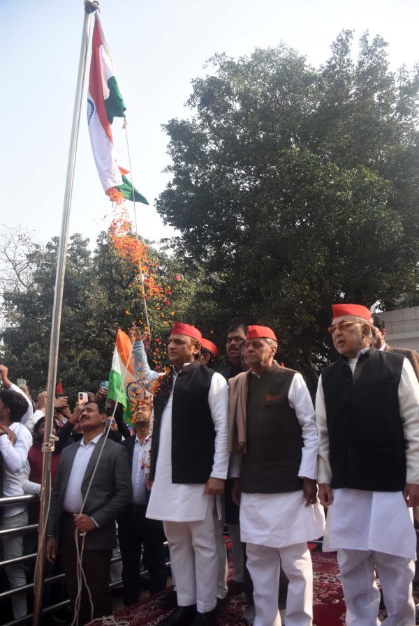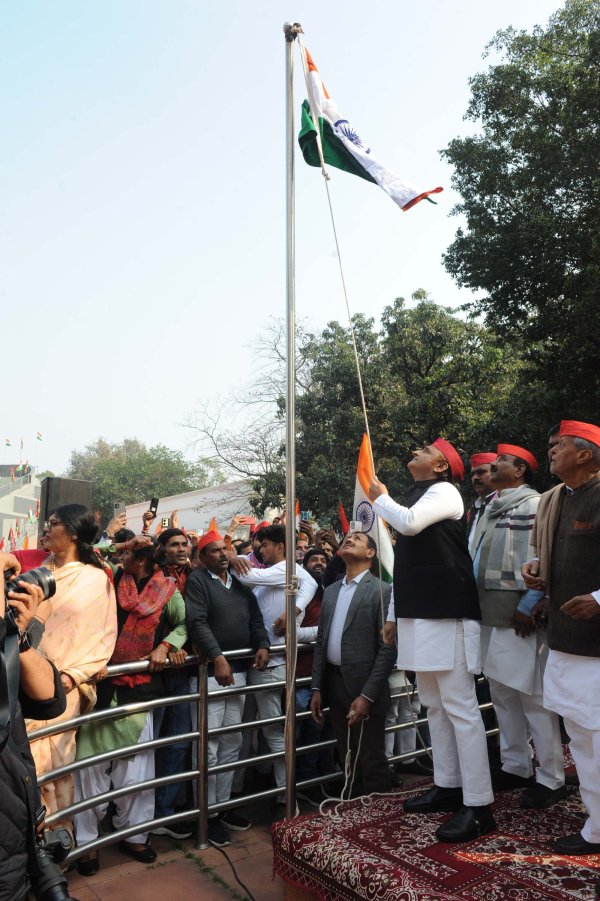 Akhilesh Yadav hoisted the national flag on Republic Day and, in a veiled attack on Yogi Adityanath, said: "Some people wake up from their sleep, but they don't come to their senses."