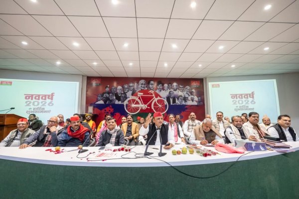 Lucknow, 1 Jan, 2026 05:43 PMलखनऊ, (आईपीएन)। समाजवादी पार्टी के राष्ट्रीय अध्यक्ष एवं पूर्व मुख्यमंत्री अखिलेश यादव से नव वर्ष के अवसर पर आज बड़ी संख्या में पार्टी कार्यकर्ताओं, नेताओं, पदाधिकारियों, विधायकों, पूर्व विधायकों, सांसदों, पूर्व सांसदों, पत्रकारों और विभिन्न समाजसेवी संगठनों के पदाधिकारियों तथा अल्पसंख्यक भाईयों ने प्रदेश मुख्यालय लखनऊ में मुलाकात कर बधाई दी। श्री यादव ने सभी का अभिवादन स्वीकार करते हुए उज्जवल भविष्य और अच्छे स्वास्थ्य की कामना की। अखिलेश ने सभी को नए वर्ष की बधाई एवं शुभकामनाएं देते हुए कहा कि आज हम संकल्प लेते हैं कि बाबा साहब डॉ. भीमराव अम्बेडकर, डॉ. राम मनोहर लोहिया और नेताजी मुलायम सिंह यादव ने जो रास्ता दिखाया है उस पर चलेंगे और देश समाज को खुशहाली के रास्ते पर ले जाने का काम करेंगे। नए वर्ष में सभी को नयी ऊर्जा और संकल्प के साथ मिलकर रहना है। काम करना है। इस अवसर पर पार्टी नेताओं और कार्यकर्ताओं को सम्बोधित करते हुए अखिलेश ने कहा कि 2027 में भाजपा की नकारात्मक सरकार को हटाना है। सत्ता से बाहर करना है। इस सरकार में अन्याय, अत्याचार, मंहगाई, बेरोजगारी, भ्रष्टाचार चरम पर है। जनता त्रस्त है। 2027 में भाजपा सरकार का हटना तय है।