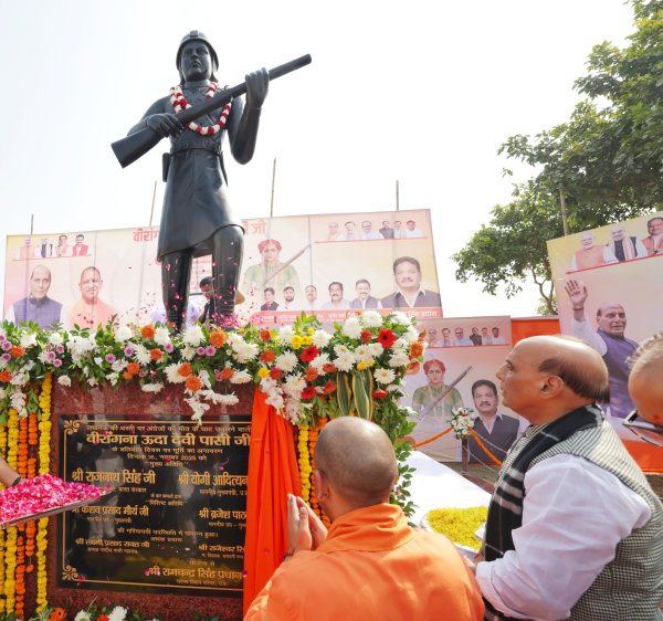 Union Defence Minister Rajnath Singh and UP CM Yogi unveiled the statue of warrior Uda Devi Pasi in Lucknow, saying: Uda Devi set the standard of patriotism.