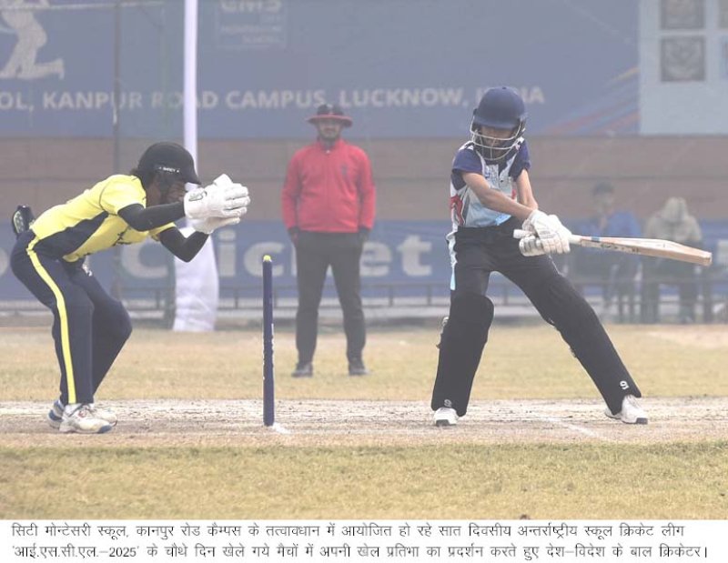 Lucknow, 16 Dec, 2025 10:45 PMलखनऊ, (आईपीएन)। सिटी मोन्टेसरी स्कूल, कानपुर रोड कैम्पस द्वारा आयोजित किये जा रहे सात-दिवसीय अन्तर्राष्ट्रीय स्कूल क्रिकेट लीग ‘आई.एस.सी.एल.-2025’ का चौथा दिन आज बेहद शानदार रहा, जिसमें देश-विदेश के बाल क्रिकेटरों ने अपने हुनर, खेल प्रतिभा, तकनीकी कौशल व दमखम से रनों की बारिश कर दर्शकों का दिल जीत लिया। आई.एस.सी.एल.-2025 के अन्तर्गत आज सी.एम.एस. स्टेडियम, पार्थ स्टेडियम एवं गैलेक्सी ग्राउण्ड पर कुल 7 मैच खेले गये।